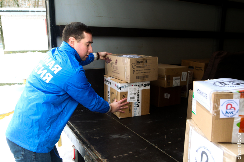 Машину загрузили на Сталеваров, 42. Гуманитарную помощь собирали в волонтерском центре «Народное единство» «Единой России».