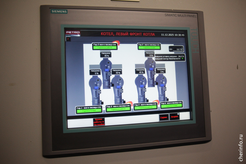 «Это первая котельная города. То, как она сейчас работает, — заслуга персонала. Наш коллектив очень сплоченный, работоспособный. Профессионалы. У нас есть сотрудница Галина Сергеевна, ей 67 лет. Это самый возрастной сотрудник. Она давно вышла на пенсию, но говорит, что дома скучно, привыкла и хочет ходить на работу. Ежемесячно проводим противоаварийные и противопожарные тренировки, программы разрабатываем на основе прошлого опыта. В год у нас проходит от 30 до 36 тренировок. Допустим, что нужно делать при отсутствии электричества или газа, при возгорании на подстанции, если падает давление. Максимально все случаи разобраны, действия отработаны. При возникновении нештатных ситуаций каждый знает, что нужно делать», — рассказал cherinfo начальник котельной № 1 Антон Николаев.