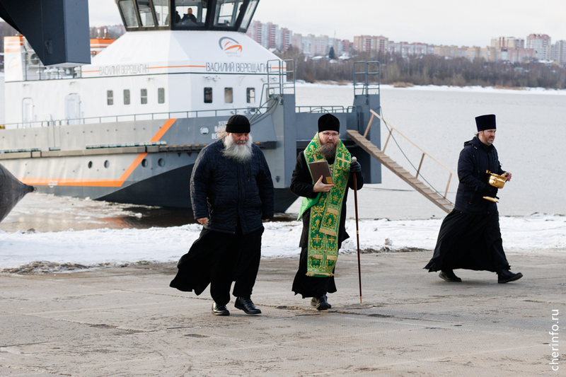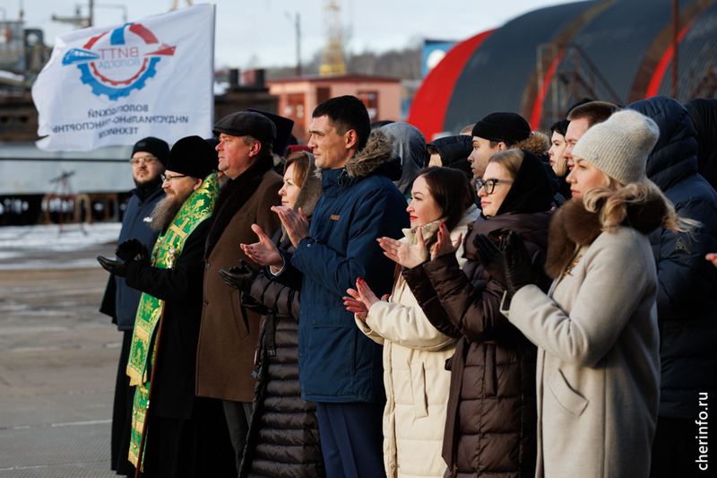 Судно освятил епископ Череповецкий и Белозерский Игнатий. О борт буксира разбили бутылку шампанского. В церемонии поучаствовали глава города Роман Маслов, руководство судостроительного завода, священнослужители, студенты.