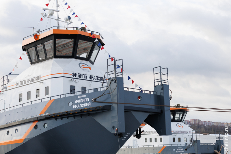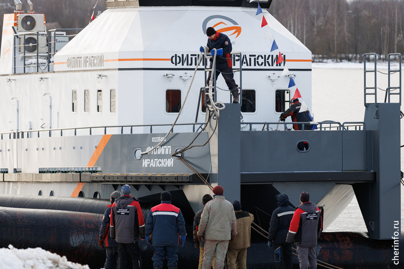 В Череповце спустили на воду буксир-толкач «Филипп Ирапский»