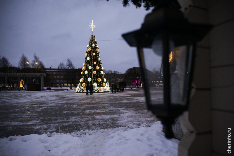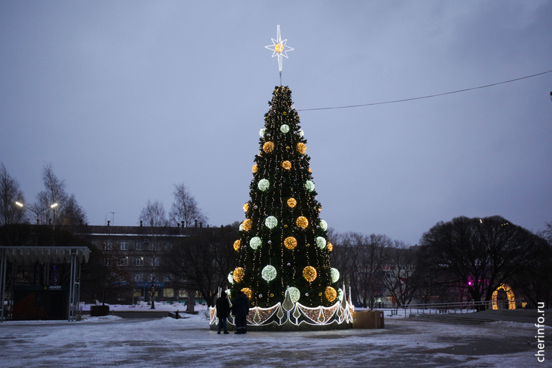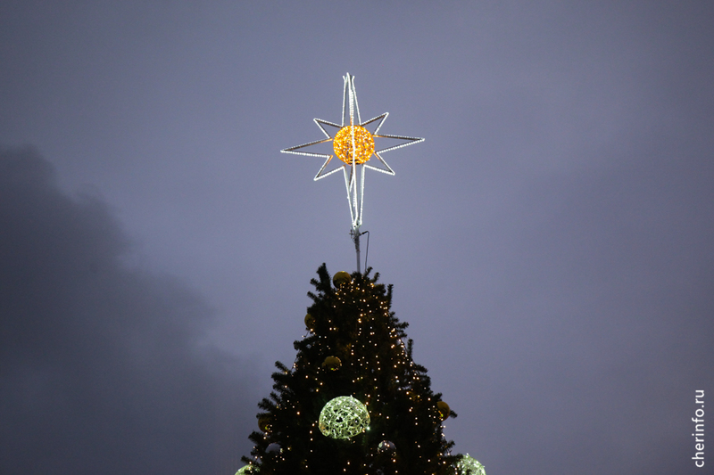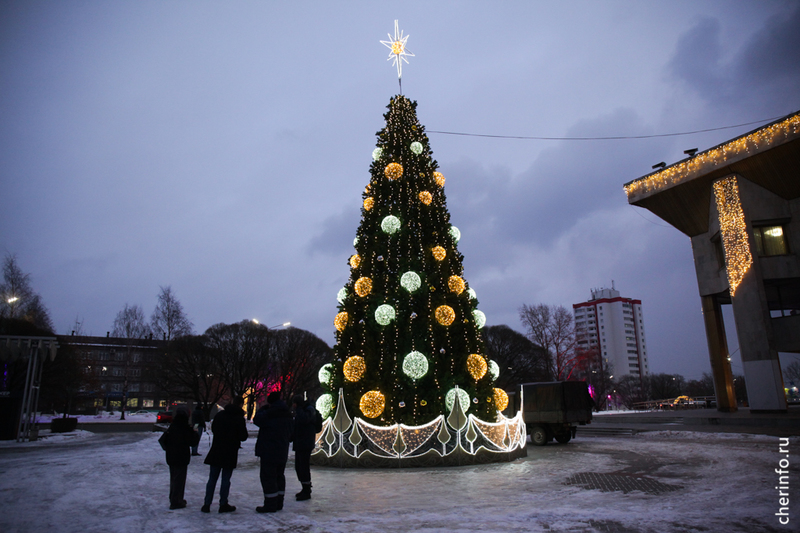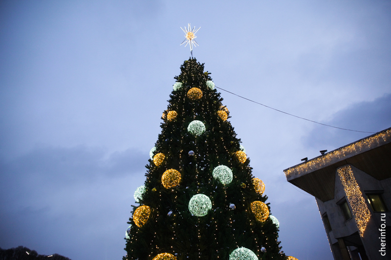 В Череповце зажгли 16-метровую ель на площади Молодежи