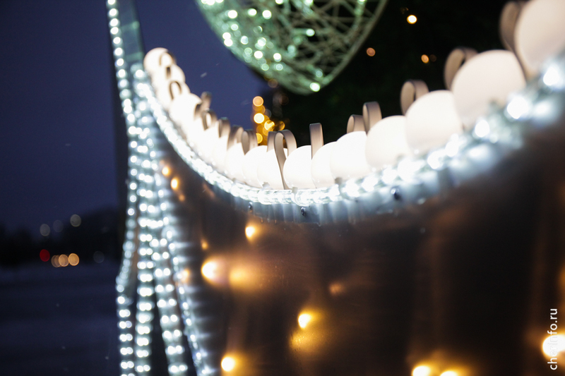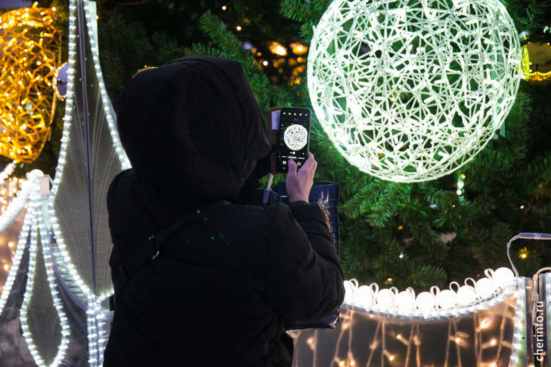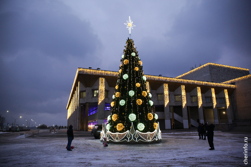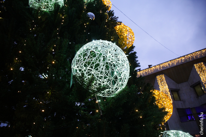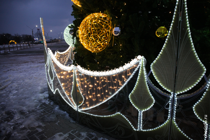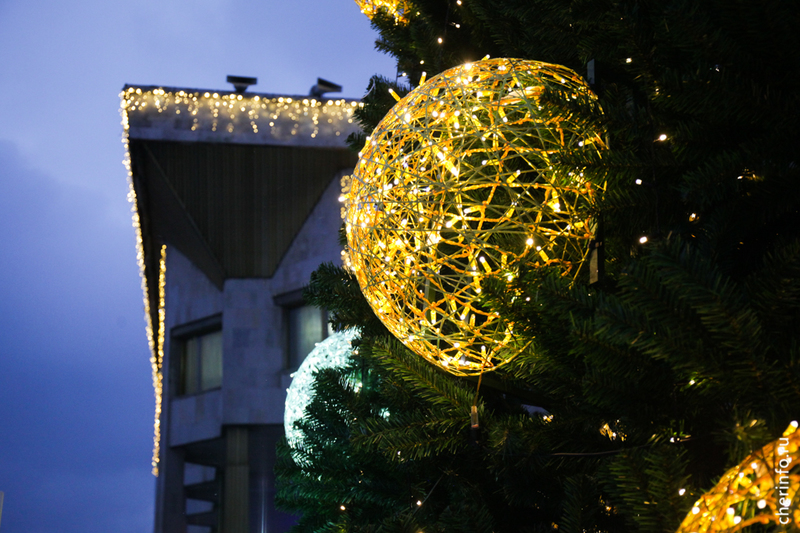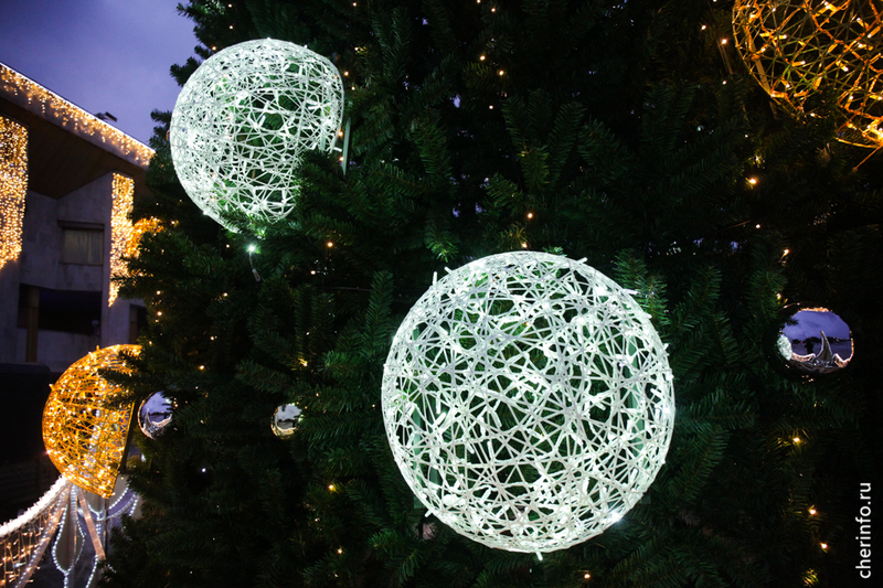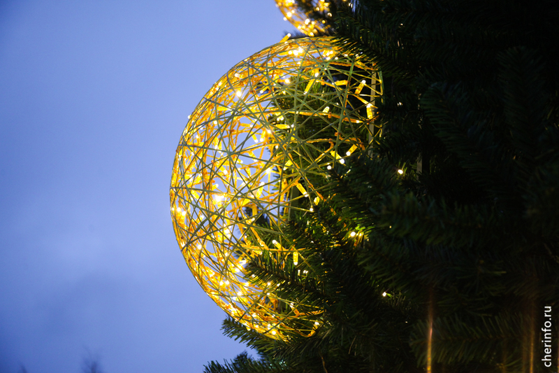 «Высота конструкции — 16 метров, ее украшают светящиеся шары, 400 метров гирлянды и примерно сотня обычных шариков. Ель новая. Ограждение тоже с подсветкой. Огоньки отключаются автоматически, когда на улице светлеет», — рассказал cherinfo главный энергетик «Водоканала» Роман Касумов.