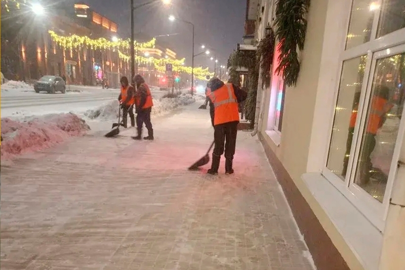 На улицы вывели 17 комбинированных дорожных машин, в том числе две с хлоридами, 14 тракторов, десять погрузчиков, столько же самосвалов, два автогрейдера и два экскаватора. Вместе с техникой улицы чистят 154 работника ручного труда.