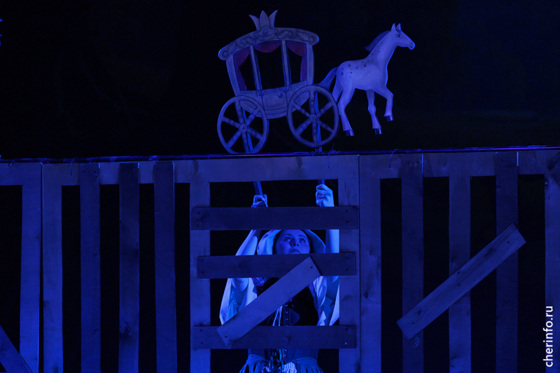 В спектакле участуют персонажи и других сказок Шарля Перо: «Мальчик-с-пальчик», «Спящая красавица», «Синяя борода», «Ослиная шкура».