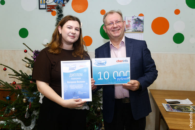 Второе место и 20 тысяч рублей — у Анны Пановой за ролик «Свет и цвет Череповца». Третье место и 10 тысяч рублей завоевала Катерина Волкова с работой «В поисках праздника: куда бежать, если хочется новогоднего Череповца?». Приз зрительских симпатий присудили Евгении Ковальчук за ролик «Снежная сказка, или Сон в зимнюю ночь» — эта работа набрала больше всего лайков в альбоме конкурса.