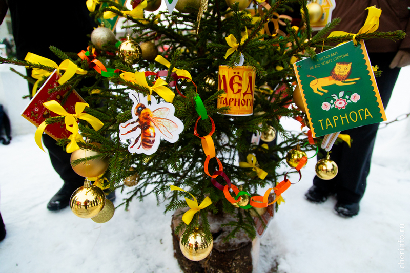 «Тарнога — столица меда, деревянных домов, северной свободно-кистевой росписи, масла и форели. Все это нашло отражение в украшении нашей елочки: тут пчелы, мед, олени, коровушки с маслом, герб Тарноги. Украшали девятиклассники и ученики седьмого класса. Гирлянду-цепочку сделали в цветах Тарногского края. Лицеисты — в желтых шапочках. Желтый цвет — символ масла, меда и лета», — поделилась замдиректора «АМТЭКа» Ирина Клюквина.