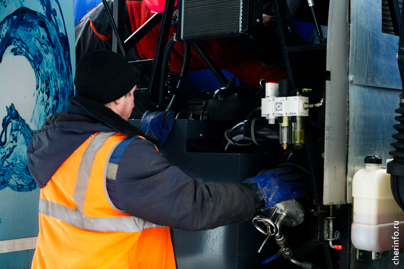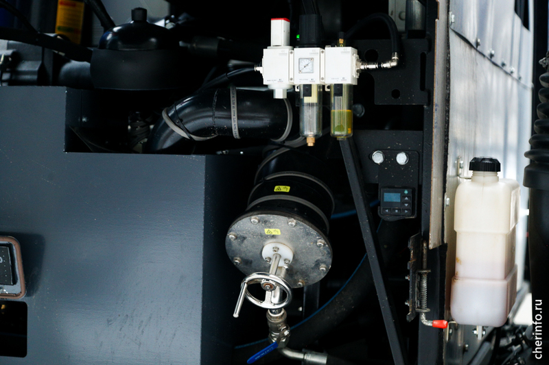 «Машину купили в Беларуси, ознакомиться с техникой помогают специалисты производителя. Машина откачивает загрязнения, они поступают в бочку, там перерабатываются. Откачанная вода очищается от песка, грязи, жиров и прочих отходов, затем попадает в следующую цистерну. Трубы промываются под высоким давлением. Теперь очистка будет занимать гораздо меньше времени: больше не надо постоянно ездить и дозаливать воду для промывки в баки», — рассказал cherinfo заместитель главного инженера «Водоканала» Звиад Зазашвили.