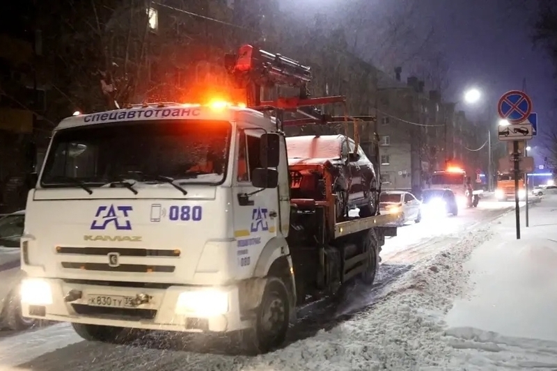В Череповце эвакуируют транспорт, мешающий уборке улиц