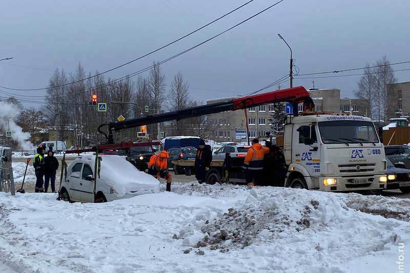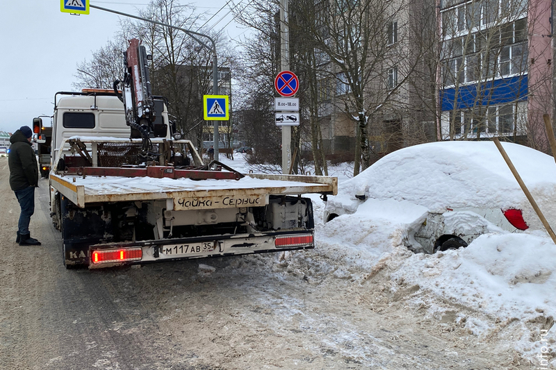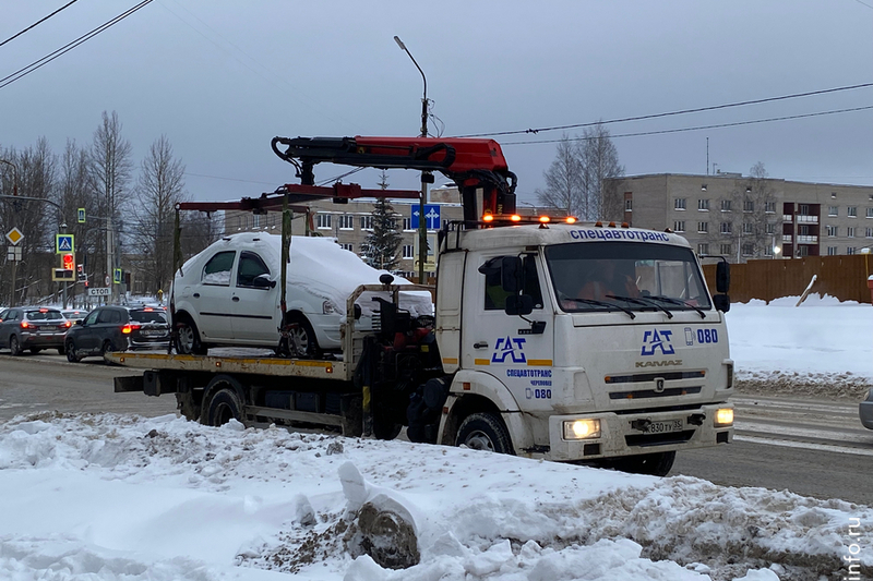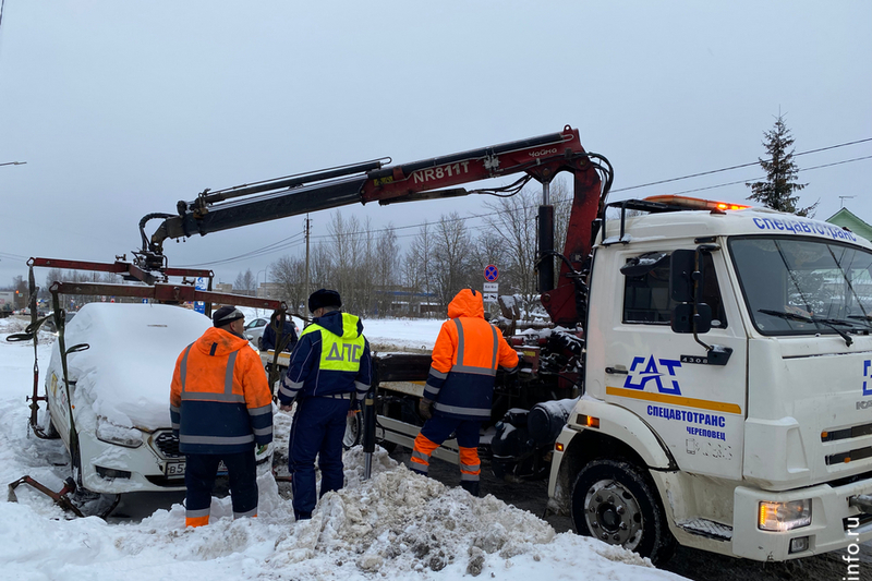 В Череповце дважды эвакуировали мешающий уборке «Датсун»