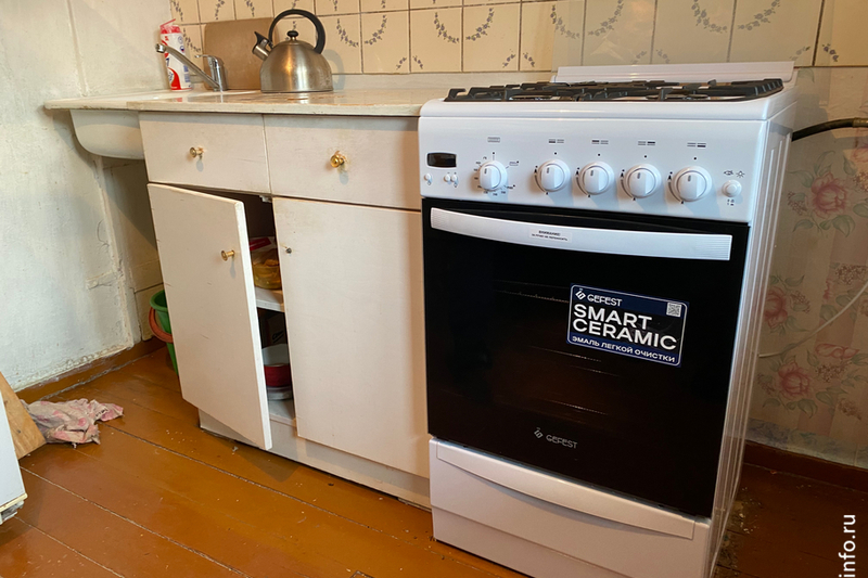 В квартире временно перекрыли газ, благодаря бизнесу пенсионерке купили новую плиту с датчиком газа. Ее подключили сотрудники «Газпром газораспределение Вологда», рассказали, как пользоваться бытовым прибором. Специалисты «Теплоэнергии» заменили стекло в кухонной двери.