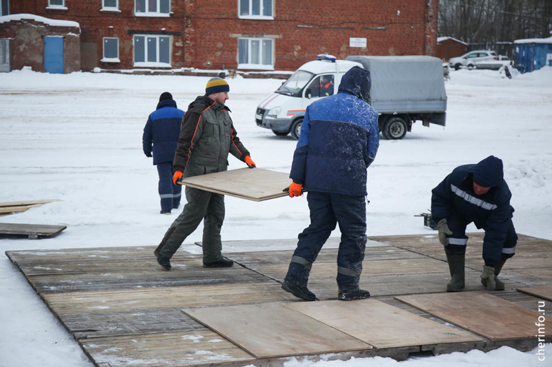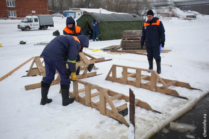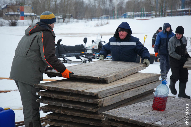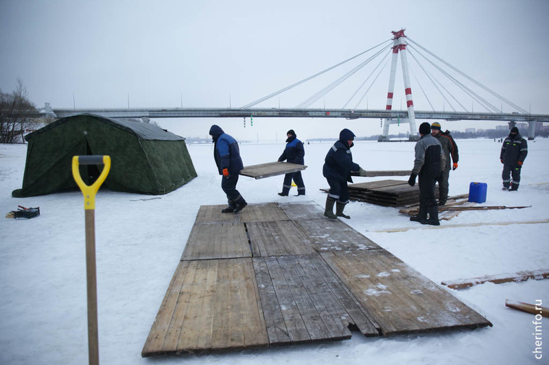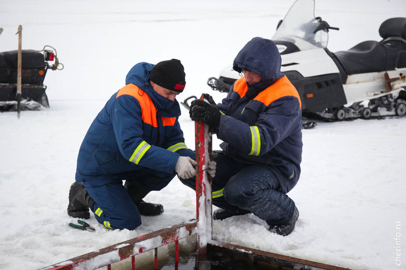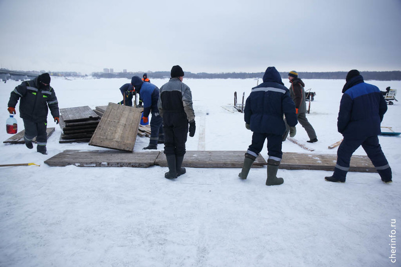 «Сейчас водолазы чистят дно. Установлены подводные ограждения. Сделаем освещение. Толщина льда 25 сантиметров, безопасно. Кроме того, будут деревянные настилы, которые еще распределять нагрузку. Организуем пропускной режим. Для желающих будет горячий чай», — рассказал cherinfo директор спасательной службы Дмитрий Санакоев.