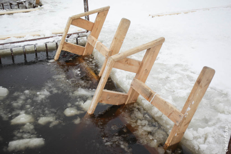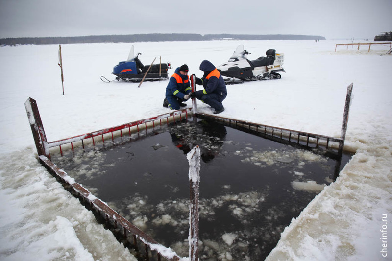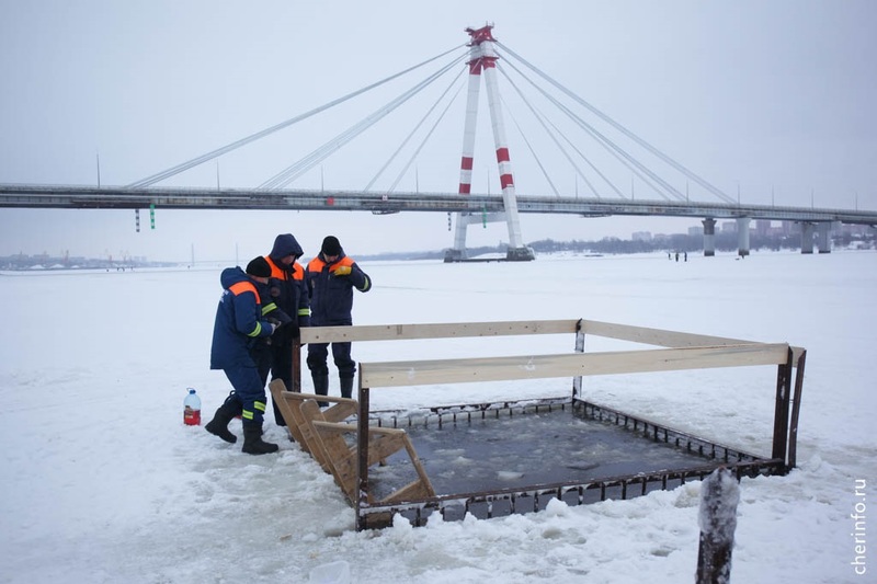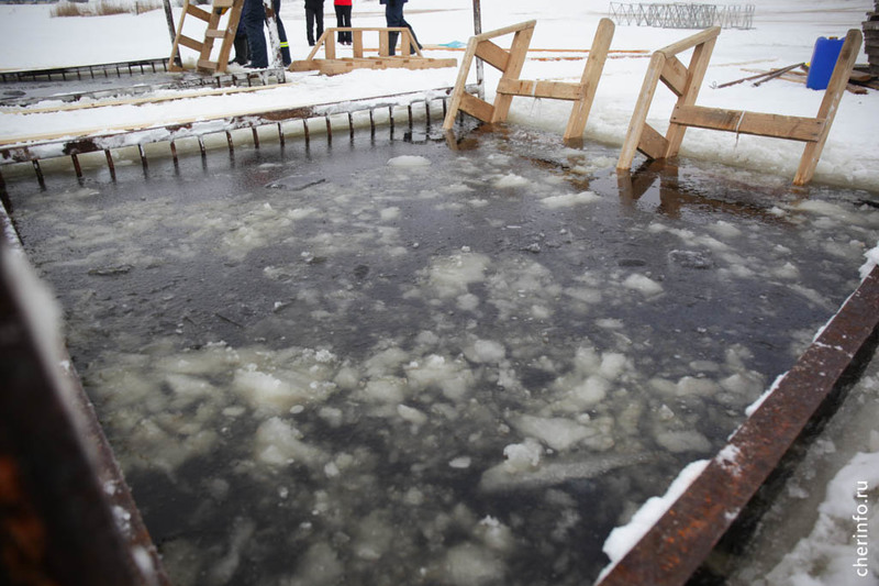 Купели сделали на Шексне у лыжной базы на Лесопильной.