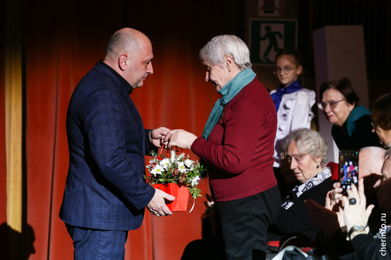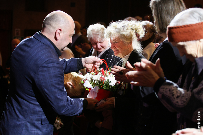 Перед началом мероприятия председатель Гордумы Илья Ивашов поздравил и вручил цветы десяти блокадникам.