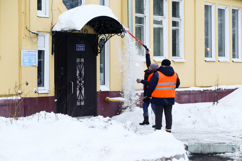 Сначала чистят часть дома со стороны пешеходной зоны, затем — по всему периметру. Вокруг здания натягивают сигнальную ленту, назначается ответственный, который следит за чисткой и тем, чтобы в зоне уборки не было людей и машин. Жителей должны оповестить о работах.