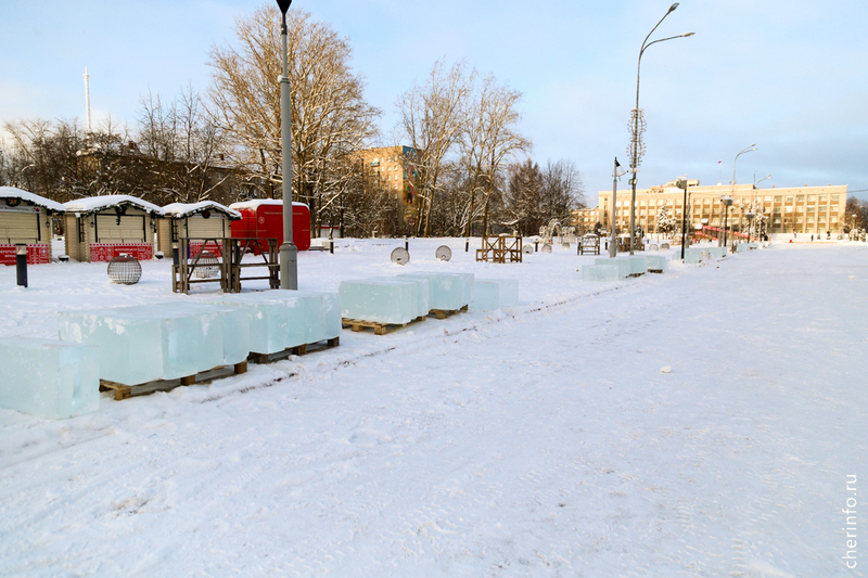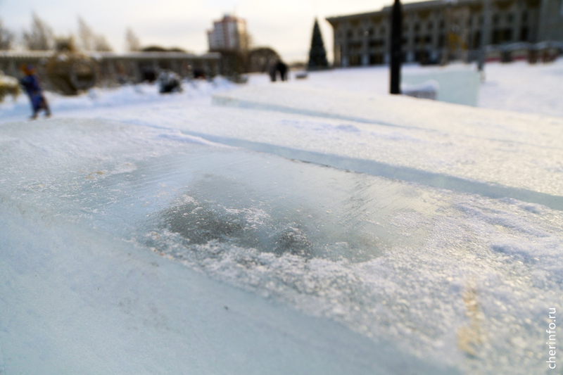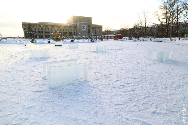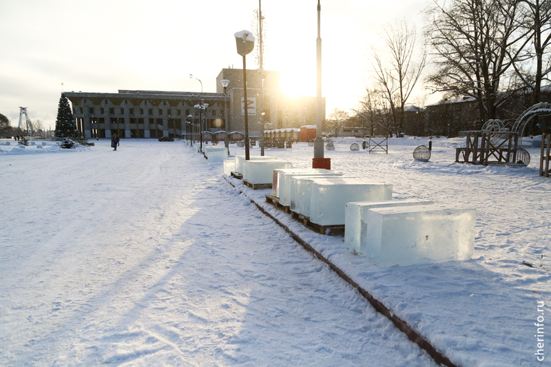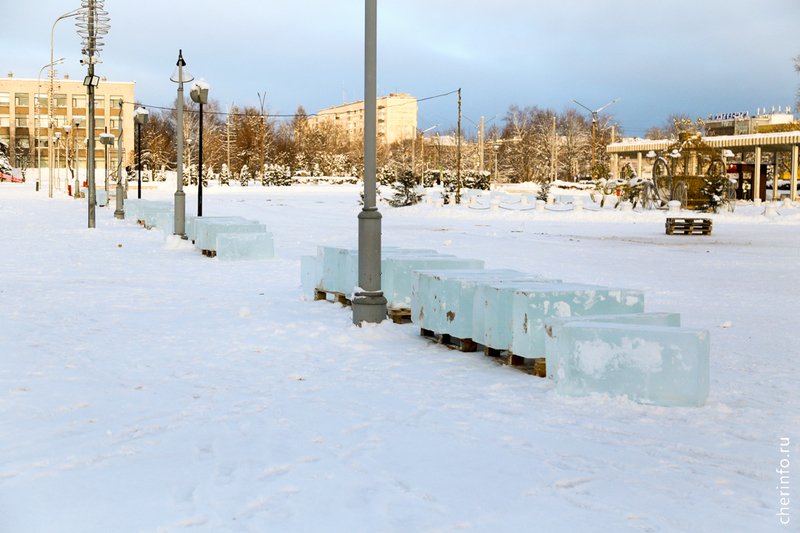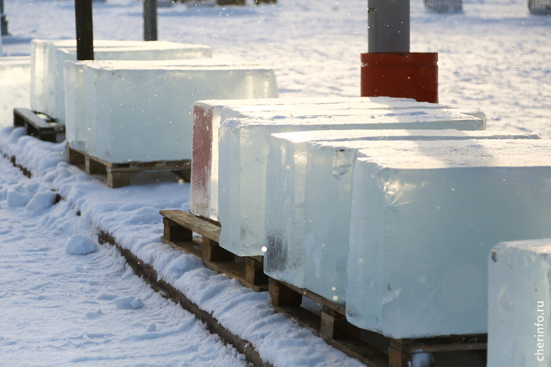 В Череповец привезли лед для ледяных скульптур