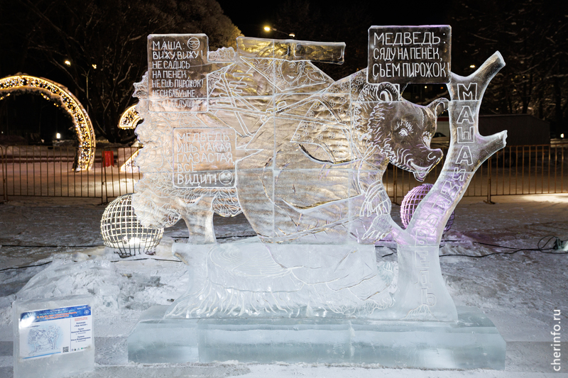 Голосование за приз зрительских симпатий проходит в группе фестиваля ледяных скульптур. Череповчанам предлагается выбрать одну из 13 работ.