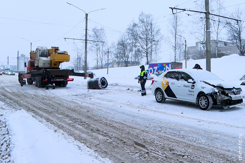 Происшествие случилось сегодня в 15 часов на повороте с улицы Судостроительной на проспект Победы. Рулон весом 4,5 тонны выпал из фуры на проезжую часть и зацепил такси «Рено-Логан».