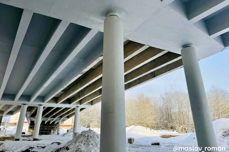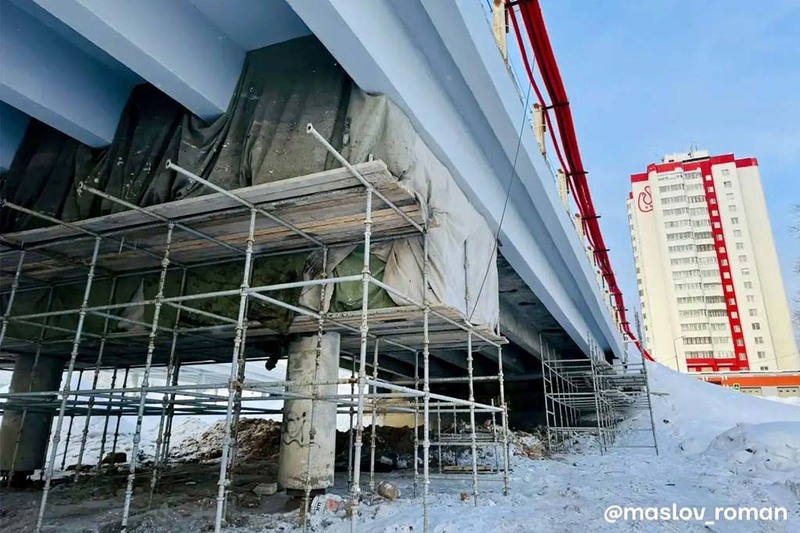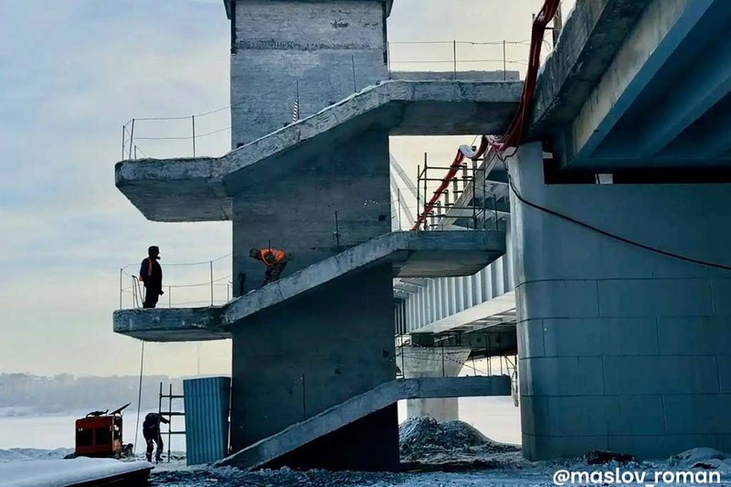 Сейчас на мосту ремонтируют пролетное строение и опоры первой эстакады, делают цоколи барьерного ограждения, ремонтируют лестницу на верховой стороне, укрепляют крайнюю опору левого берега. Работают 85 человек в дневную и ночную смену, сделаны тепляки с комфортной температурой. Работы идут по графику.