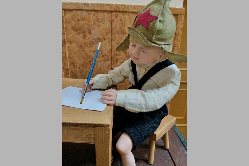 «Проект начался с реальной истории. Во время войны дети из детского сада, у которых отцы погибли на фронте, писали письма папе девочки Фиры. Мы повторили эту историю в куклах. Прообразом другой куклы стал мальчик-танкист, сын полка Петя Судаков, он наш земляк. На нас вышли представители 130-й танковой дивизии, где он был сыном полка, прислали много материалов. В архиве нашли информацию о детском приемнике-распределителе НКВД в Череповце в годы войны и сделали куклу беспризорника. Есть малолетняя узница концлагеря, мальчик-рабочий, композиция детей из серии «Голодное детство», ребенок в новогоднем костюме зайчика, семья, провожающая мужа и отца на фронт , — рассказала директор организации «Детское телевидение» Татьяна Шаронова.