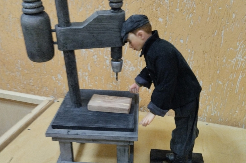Для каждой куклы оформят композицию. Так, для мальчика-танкиста сделали танк Т−34, для беспризорника — фрагмент здания приемника-распределителя, для мальчика-рабочего соорудили станок. Над макетами работают ученики школы № 26.
