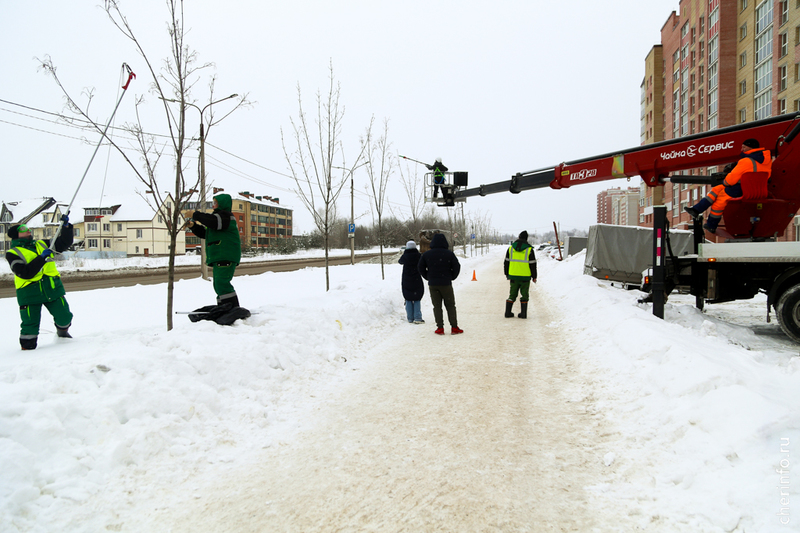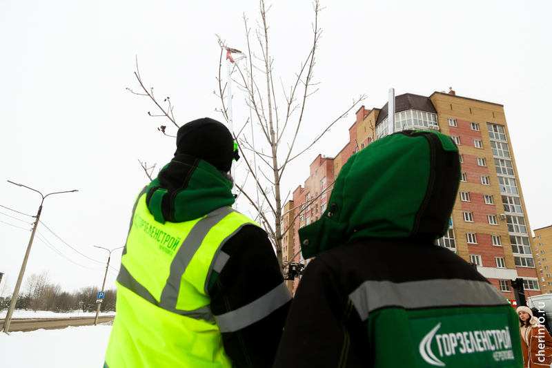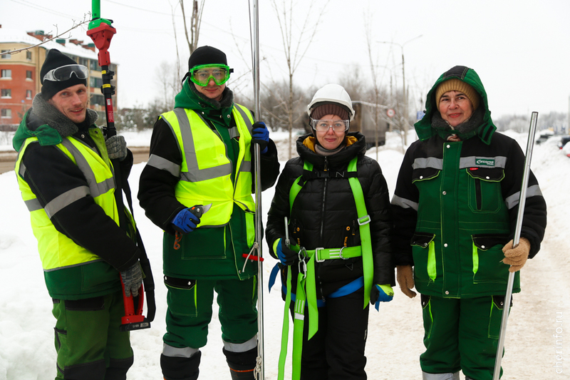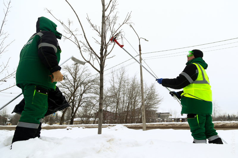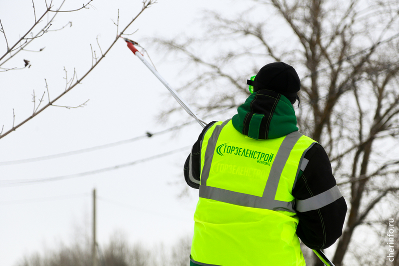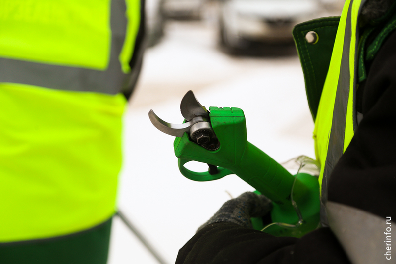«После посадки мы не трогали клены, чтобы они лучше прижились. Сегодня укорачиваем боковые побеги, выводим макушку в центральный побег и формируем крону. Снимаем от 15 до 20%, зависит от дерева. Это нужно делать сейчас, в таком возрасте, чтобы крона была густой, дерево росло правильно, без каких-то дополнительных кронирований. Мы специально не будем обрезать центральный побег, чтобы клены росли и вверх и создавали зеленый щит. Все обрезки проводятся до −15 градусов, пока дерево находится в состоянии покоя. Сегодня хотим обработать 60 деревьев», — рассказала cherinfo директор «Горзеленстроя» Ирина Аппалонова.