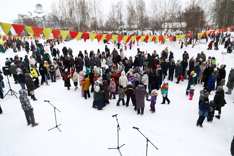 На сцене у усадьбы выступили фольклорные коллективы. Посетители могли купить сувениры, мягкие игрушки, полотенца, валенки, бусы, деревянное орудие, подушки и другую продукцию. Для всех желающих провели мастер-классы по росписи пряников и созданию куклы Масленицы.