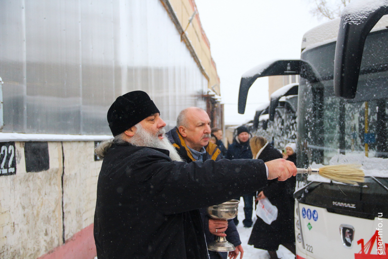 Чин освящения совершил в автоколонне № 1456 ключарь Архиерейского подворья Воскресенского собора иеромонах Нил. Он окропил святой водой все 15 новых автобусов. В каждом разместили икону Николая Чудотворца.