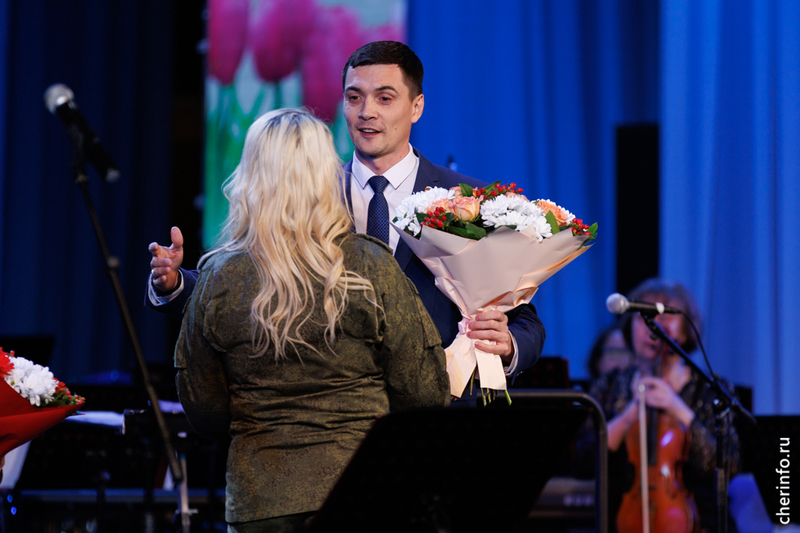 Он прошел 6 марта во Дворце металлургов. На концерт пригласили череповчанок, в том числе женщин-участниц СВО. Им вручили цветы.