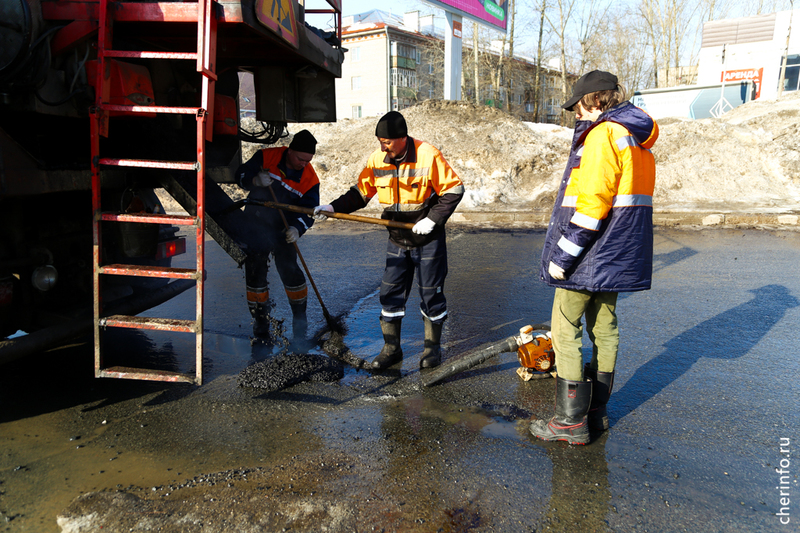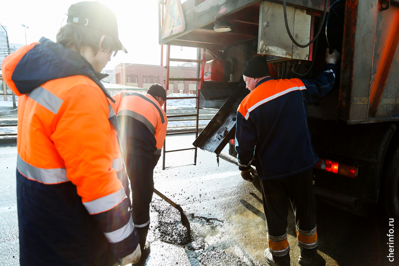 «Ямочный ремонт начали с наступлением плюсовых температур. В первую очередь внимание уделяем дорогам первой категории, центральным улицам. Работаем круглосуточно. За смену заделываем около 30 квадратных метров ям. Сообщения о ямах от жителей поступают регулярно, выезжаем на указанные адреса, осматриваем и сразу устраняем. Жители могут обратиться через приемную нашей организации и сообщить о дефектах на дороге», — рассказал cherinfo начальник службы по ремонту дорог «Спецавтотранса» Сергей Богачёв.
