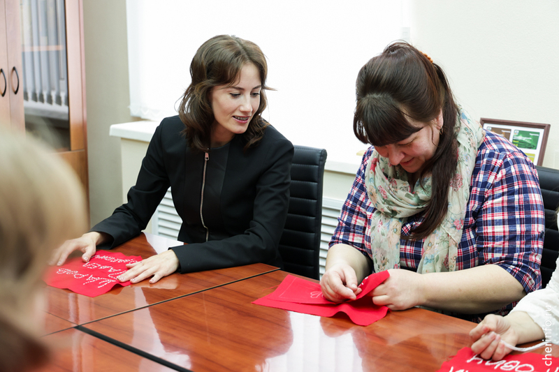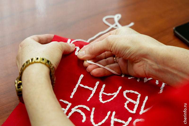 Работники предприятия сегодня вышивали на лоскутах имена своих героев — участников СВО, Великой Отечественной и других вооруженных конфликтов. После кусочки ткани размером 30 на 30 сантиметров передадут в отделение «Единой России», чтобы вшить их в 100-метровое знамя.