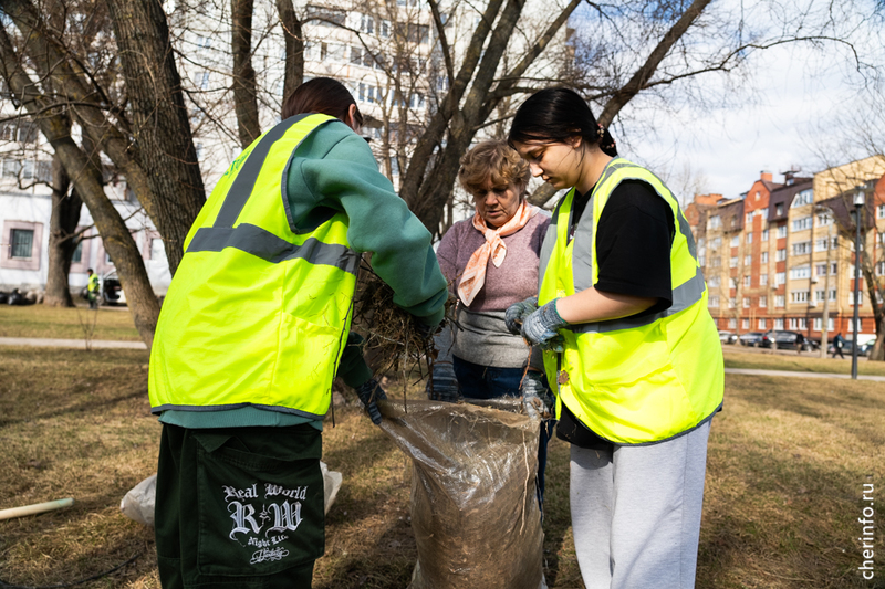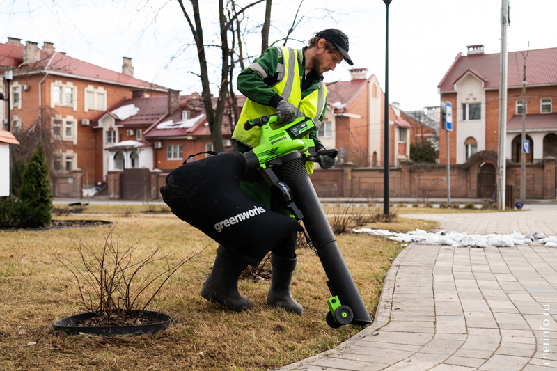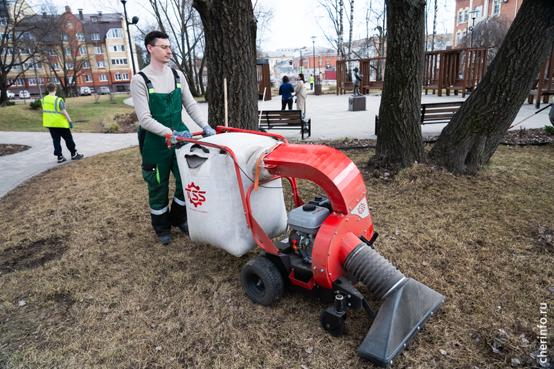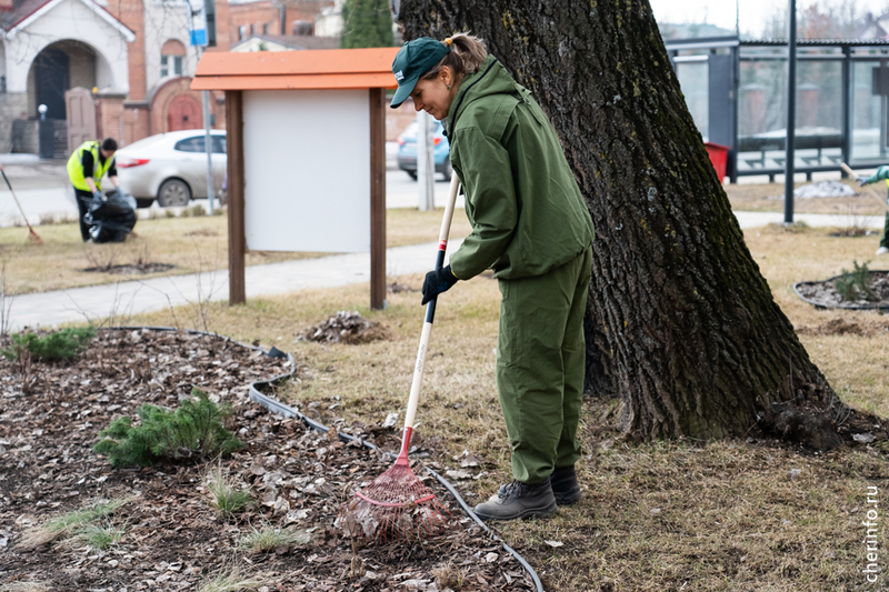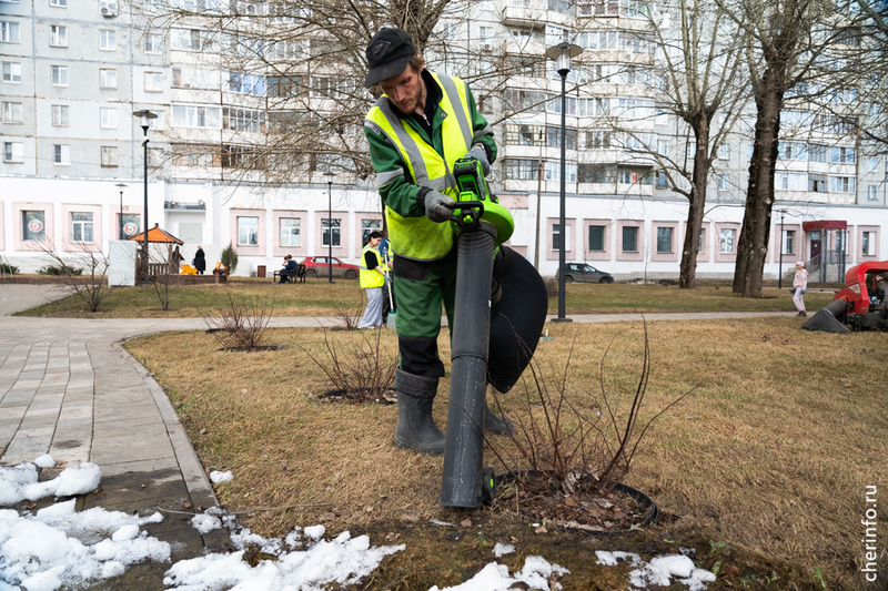 «Осенью мы убирали опавшую листву с тополей, чтобы весной было легче. Убираем листву с газонов, полностью их чистим. Потом будем прочесывать и подкармливать газон, чтобы трава вышла без проблем, без проплешин. Сегодня чистим клубы, после подкормки будем подсыпать корой. Используем пылесосы, воздуходувки, которые помогают убрать мелкий мусор и чистить дорожки от пыли. После Бисквитного сквера будем работать у Воскресенского собора, в „Серпантине“, на Городецкой и в привокзальном сквере», — рассказала cherinfo директор «Горзеленстроя» Ирина Аппалонова.