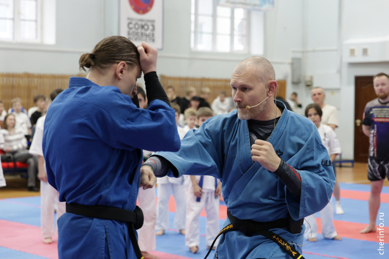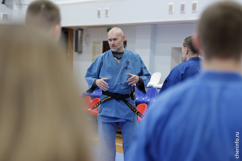 Мастер-класс прошел 8 апреля в Центре боевых искусств на Труда, 33а. В занятии участвовали спортсмены из Череповца и Вологды. Временно исполняющий полномочия главы города Андрей Накрошаев показал несколько приемов, в том числе элементы защиты, после прошел спарринг между участниками тренировки.