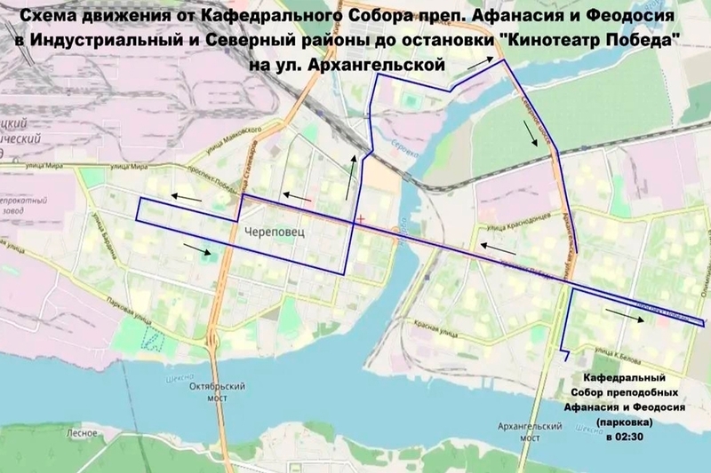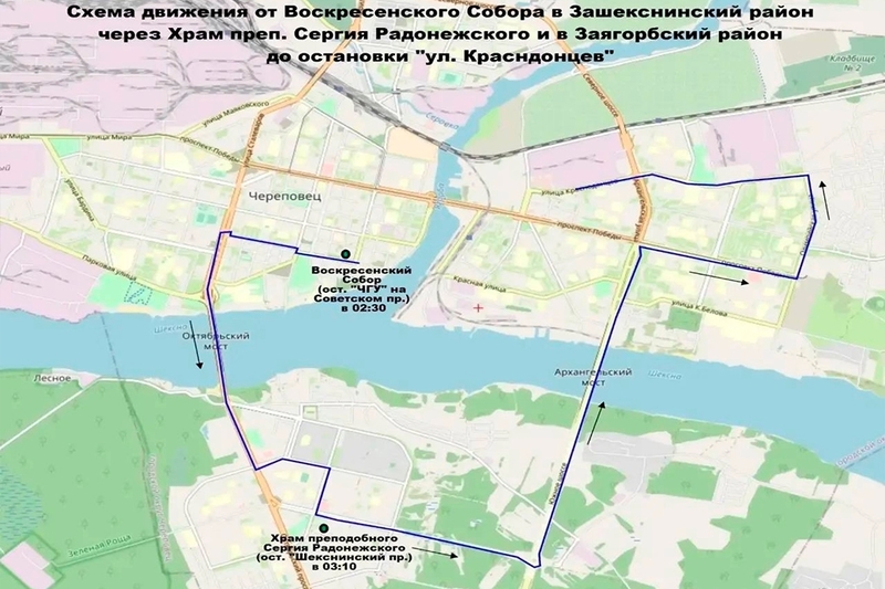 После праздничных служб в церквях пассажиров будут развозить по нескольким маршрутам: от Воскресенского собора — в Заречье и в Зашекснинский район, от кафедрального собора — в Индустриальный и Северный районы, от церкви Рождества Христова — в Заречье и Зашекснинский район.