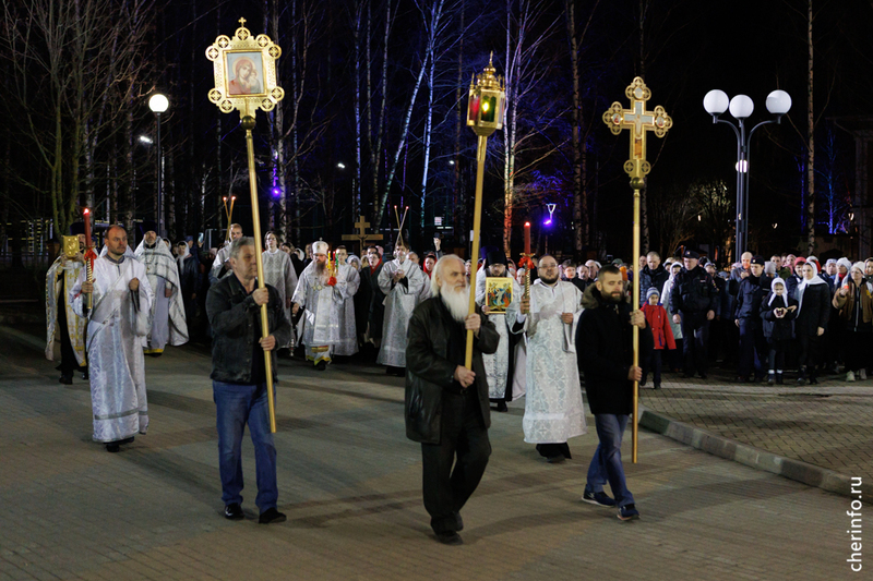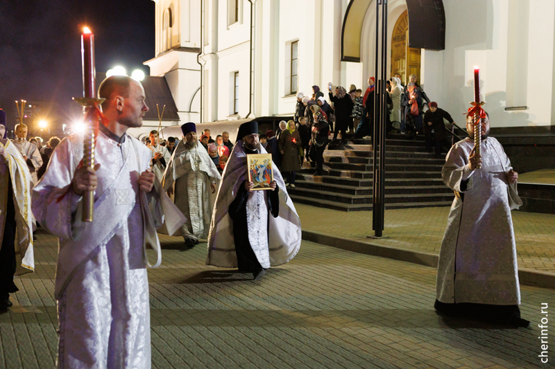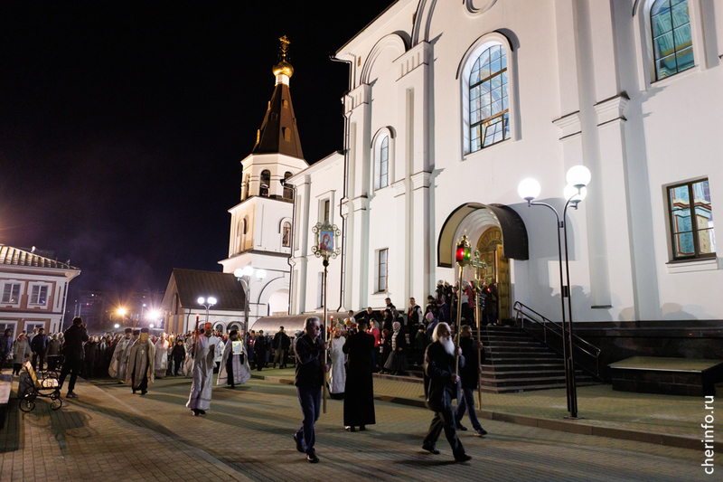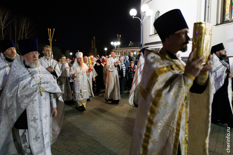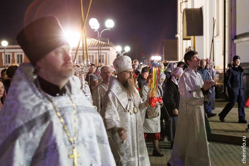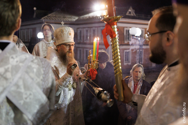 Глава города Андрей Накрошаев в пасхальную ночь посетил кафедральный собор Череповца