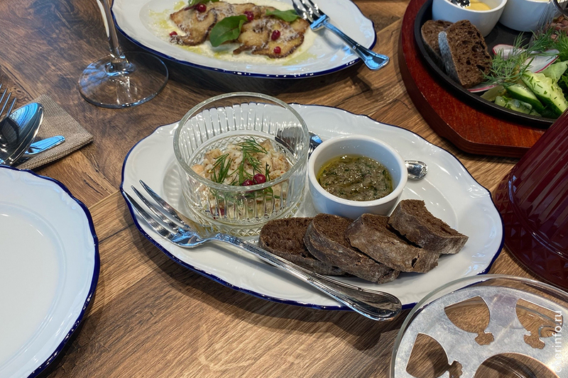 «Среди самых популярных позиций — белые грибы из наших лесов. Мы подаем их на твердом фермерском сыре и с юшкой из сухих моховиков. Еще предлагаем щуку, томленную в масле с квашеными грибами. Основу для этого рецепта мы взяли из произведений Вильяма Похлебкина, исследователя русской кухни. В послевоенное время он изучал кухню нашего региона, описывал вепские блюда. Самая популярная позиция в меню — пельмени из вологодского судака с луковым соусом», — рассказал cherinfo шеф-повар кафе Константин Балдышев.