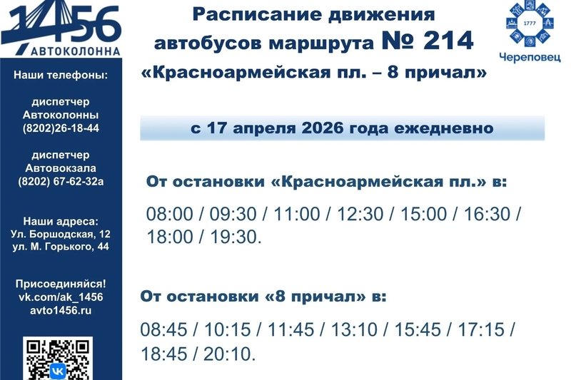 Изменения вступят в силу с 17 апреля, об этом сообщает автоколонна № 1456. Подробности в карточках.