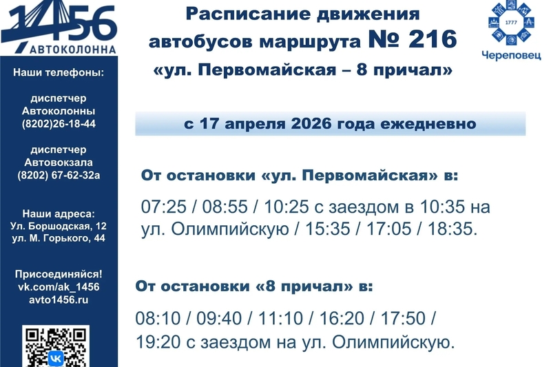 В Череповце автобусы № 214 и № 216 до дач будут ходить ежедневно